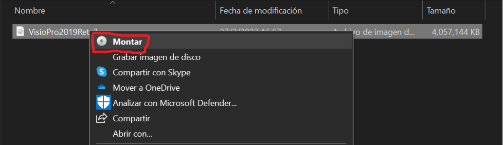 2: Navegue hacia la carpeta de descargas y haga clic derecho en “Montar”